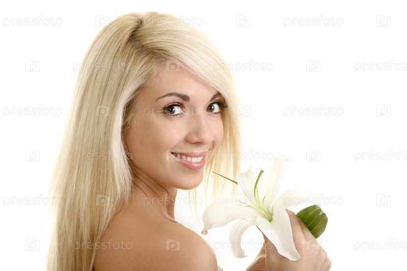 Портрет молодой девушки с цветком лилии