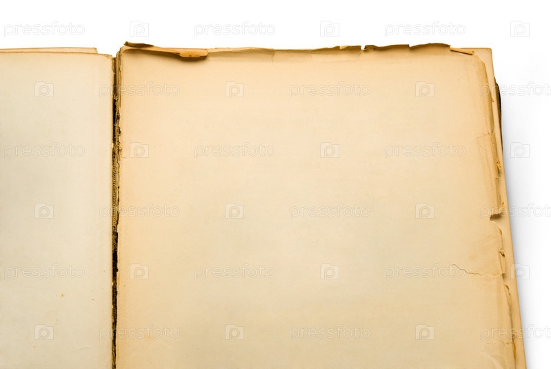 Открытая древняя книга с пустыми страницами, изолированная на белом фоне
