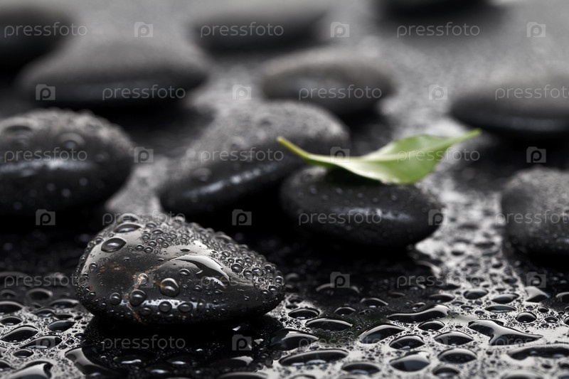 Камни для спа-процедур и зеленый лист