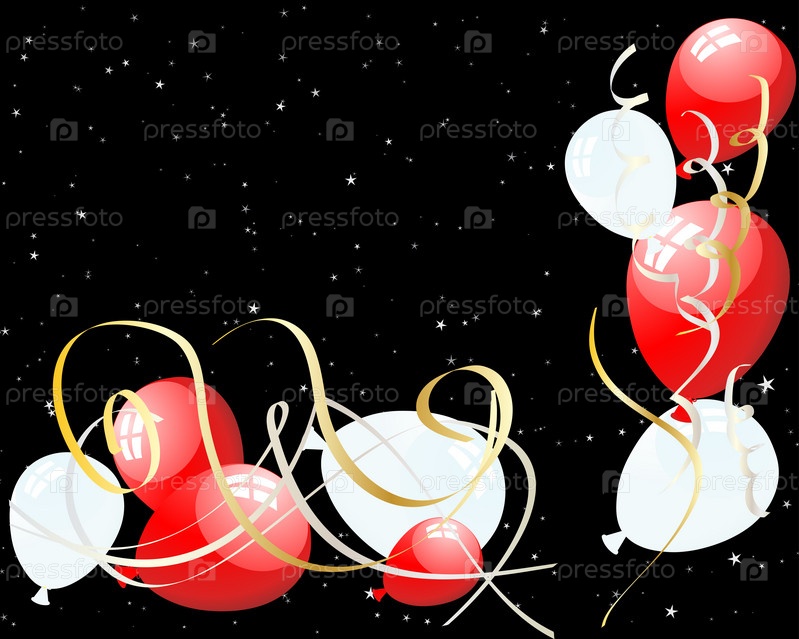 Красные и белые воздушные шары на черном фоне