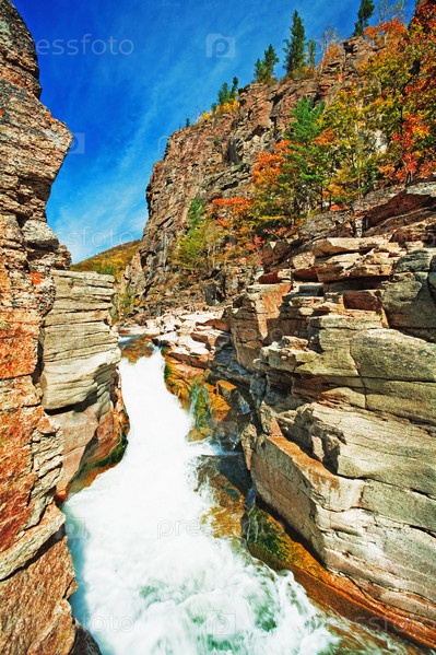 Бурная горная река осенью