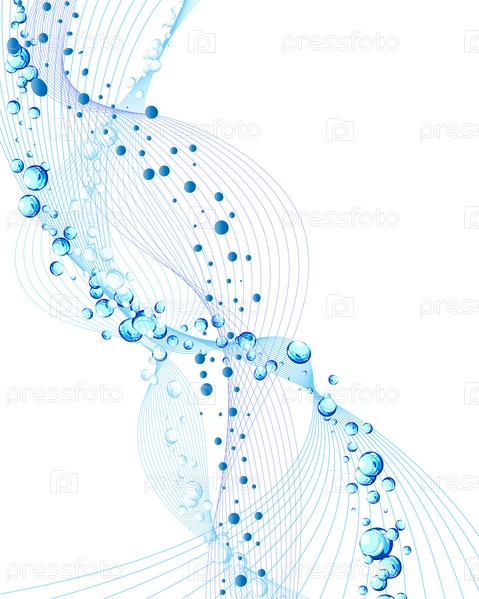 Голубые линии, имитирующие волны с пузырьками. Векторная иллюстрация