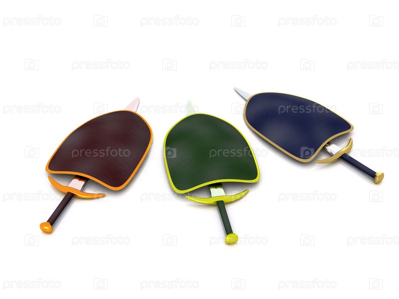 Три меча и щита на белом фоне