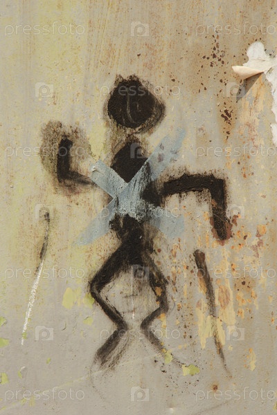 Нарисованный человечек с крестиком на грязной стене