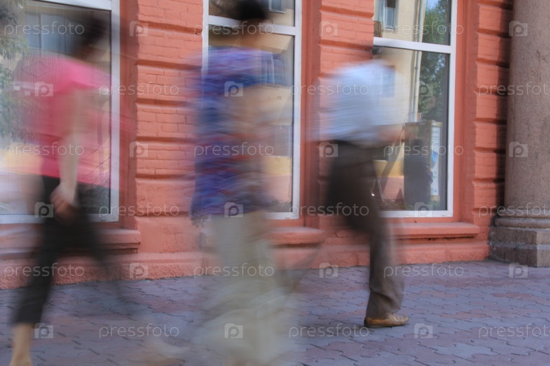 Смазанные фигуры прохожих на улице