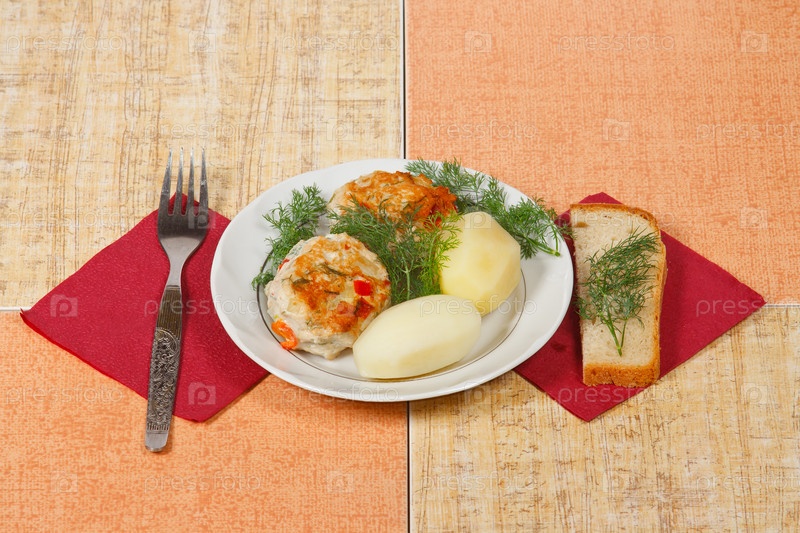 Зразы с зеленью и картофелем на тарелке