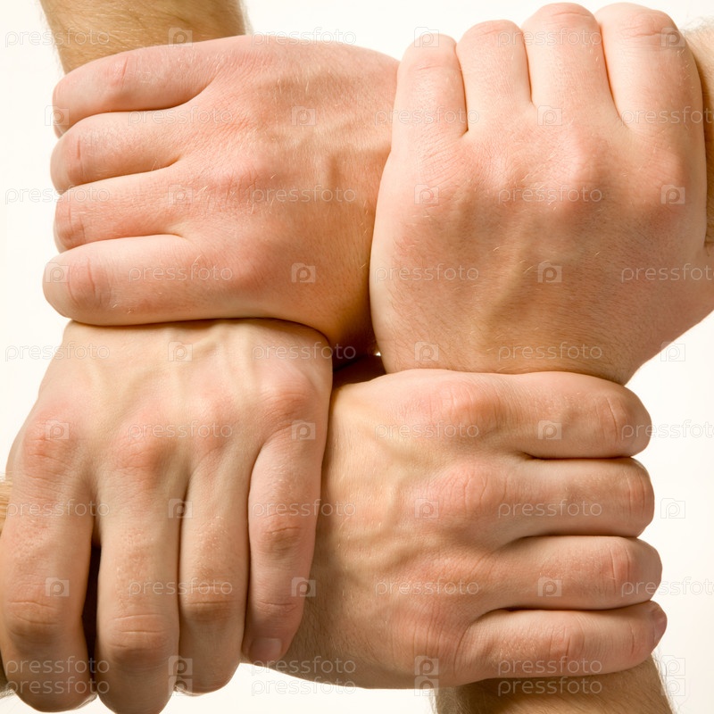 Близкий план человеческих рук, касающихся друг друга на белом фоне