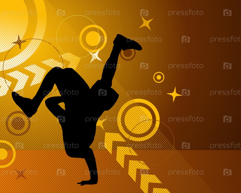 Силуэт танцора на коричневом фоне с векторными элементами