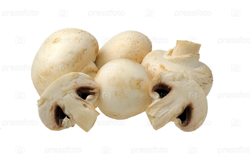 Свежие шампиньоны на белом фоне