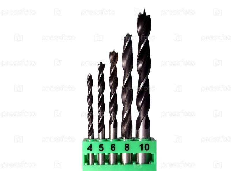 Сверла для дрели на белом фоне