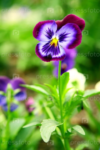 Виола на клумбе в саду
