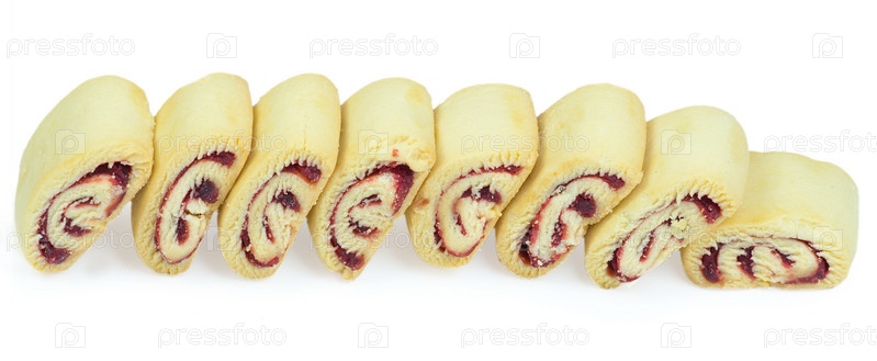 Сдобные рулетики на белом фоне