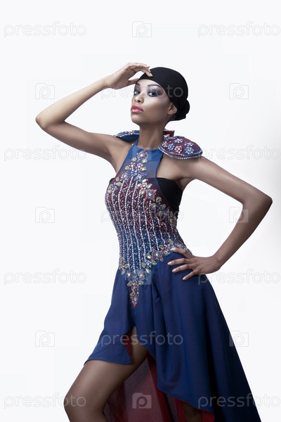 Темнокожая женщина в синем платье