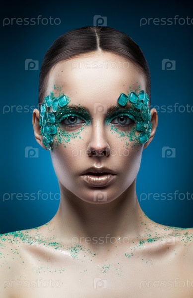 Женщина с бирюзовым макияжем