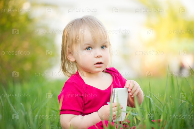 Маленькая девочка играет мобильным телефоном