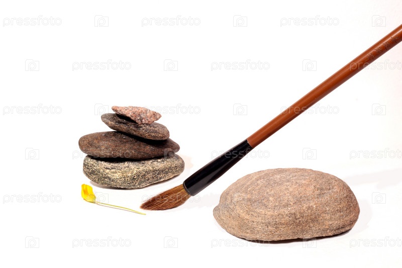 Камни и кисточка на белом фоне