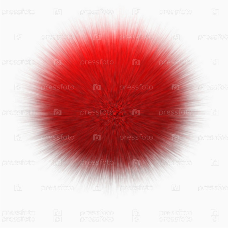 Пушистый красный шар на белом фоне