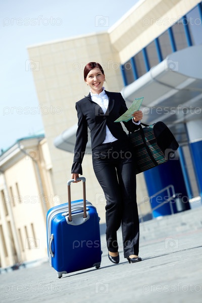 Молодая девушка с чемоданом