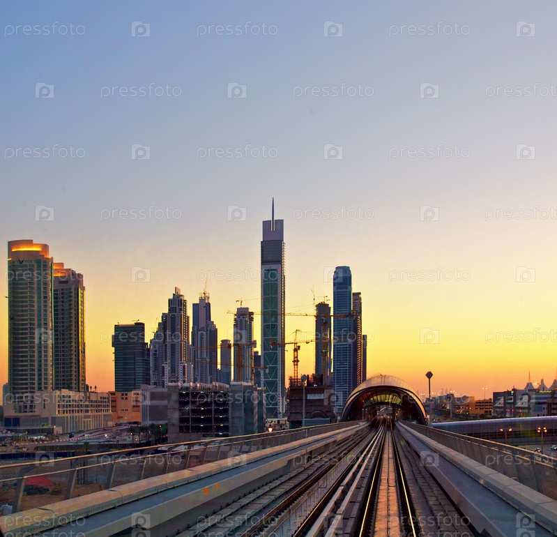 Рельсы метро в центре современного Дубая, ОАЭ