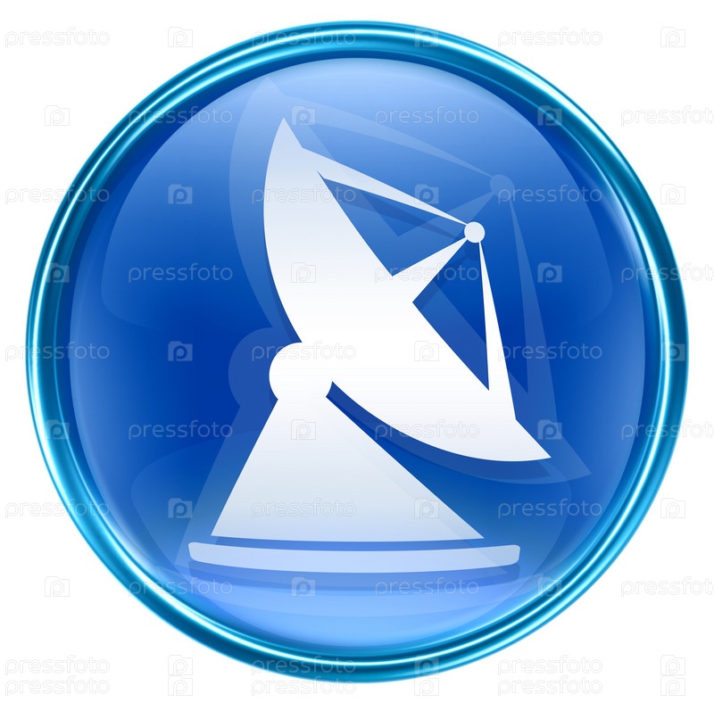 Синяя веб-иконка с изображением спутниковой антенны на белом фоне