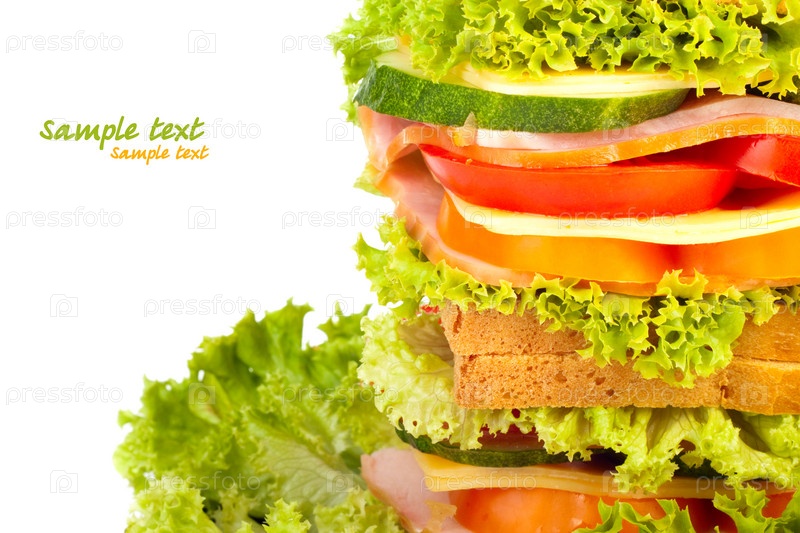 Сэндвич с ветчиной на белом фоне