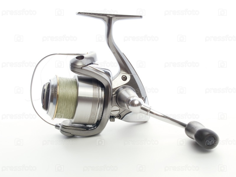 Рыболовная катушка изолирована на белом