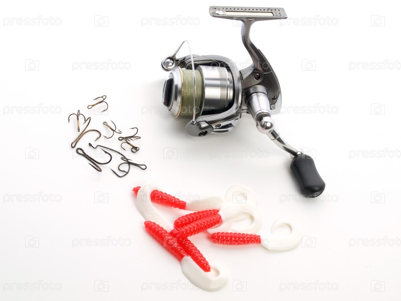 Рыболовная катушка изолирована на белом