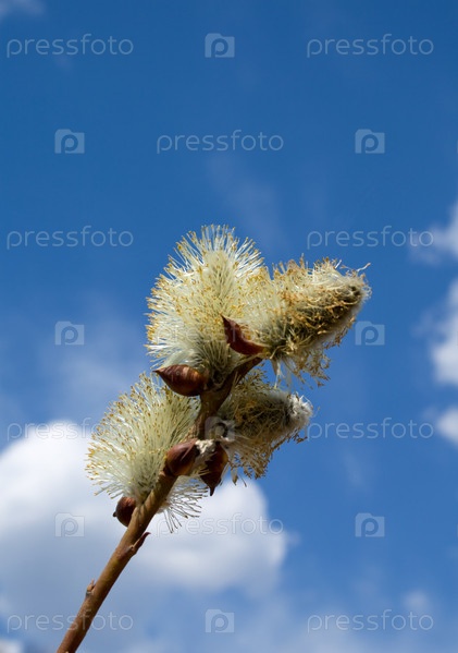 Цветущая верба на фоне неба
