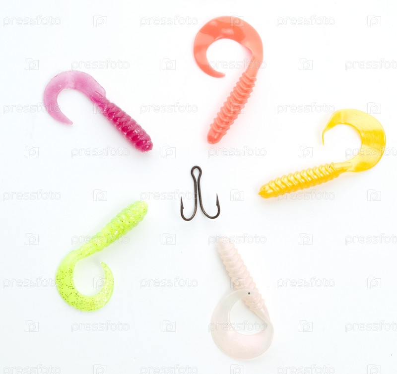 Рыболовные приманки на белом фоне