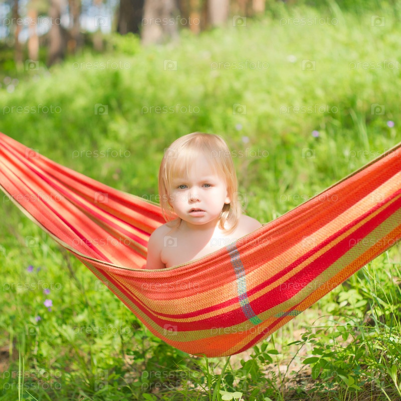 Очаровательный ребенок сидит в гамаке