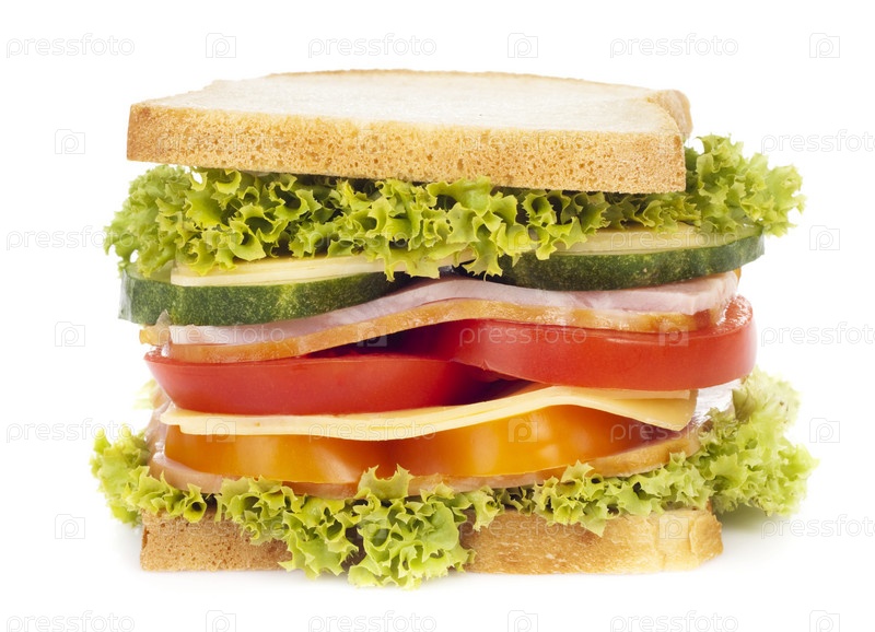 Бутерброд с помидорами, ветчиной, перцем и листьями салата