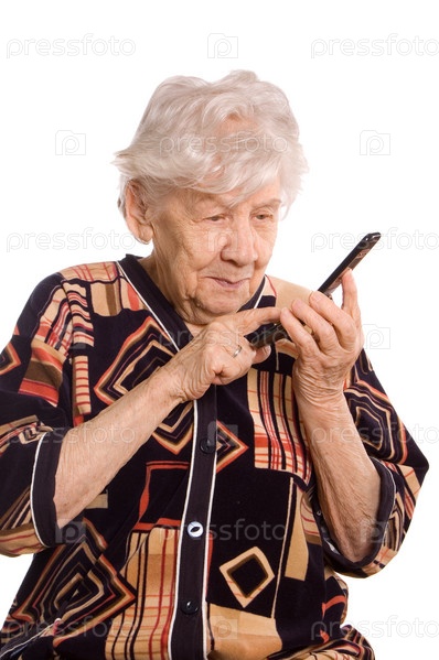 Пожилая женщина говорит по телефону