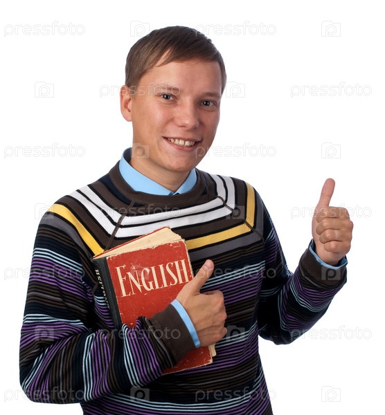 Школьник с учебником по английскому языку