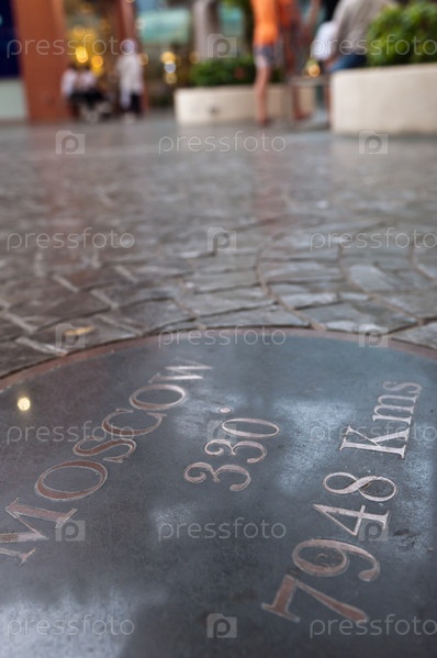 Железный люк с указанием расстояния до Москвы из Пхукета, Таиланд