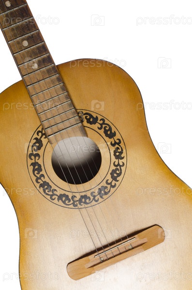 Акустическая гитара на белом фоне