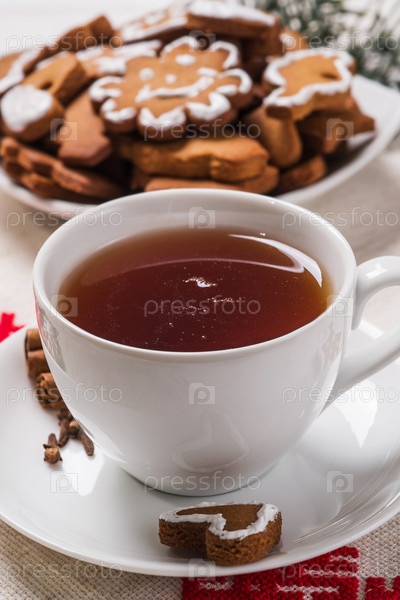 Чашка черного чая и рождественское печенье