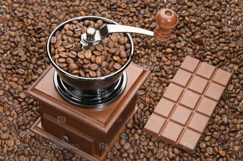 Кофемолка с плиткой шоколада