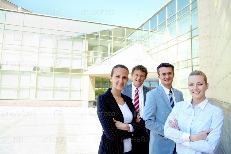 Деловые партнеры возле офисного здания