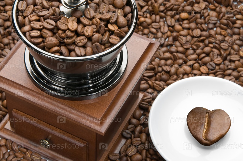 Кофемолка с сердцем на блюдце