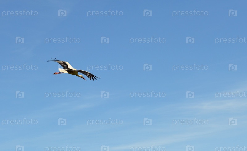 Белый аист в синем небе