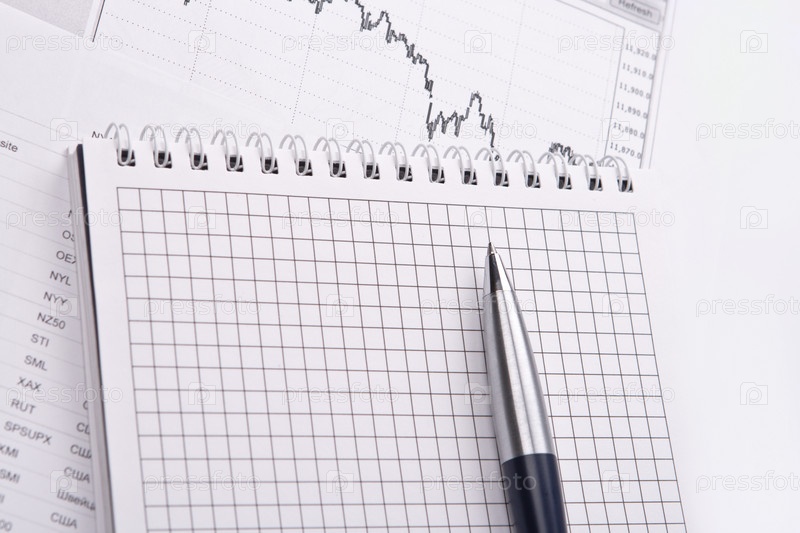 Блокнот, ручка и графики крупным планом