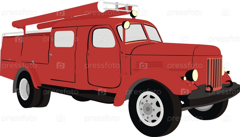 Пожарная машина, иллюстрация на белом фоне