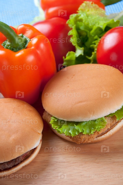 Фастфуд на фоне свежих овощей