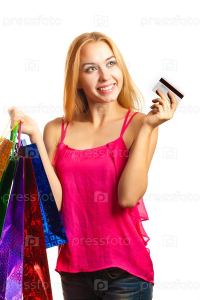 Женщина с покупками на белом фоне