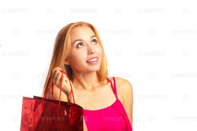 Женщина с покупками на белом фоне