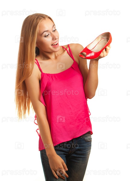 Молодая женщина держит туфли