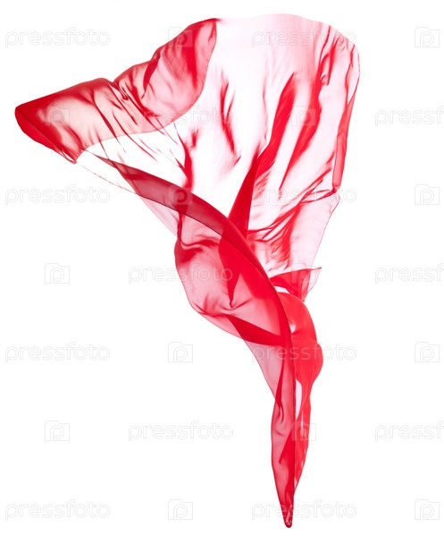 Красная прозрачная летящая ткань, изолирована на белом фоне