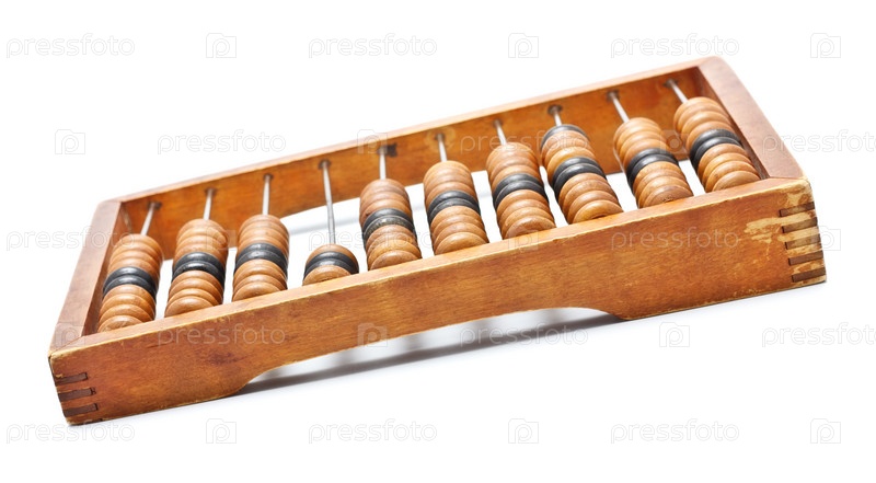 Старые деревянные счеты на белом фоне