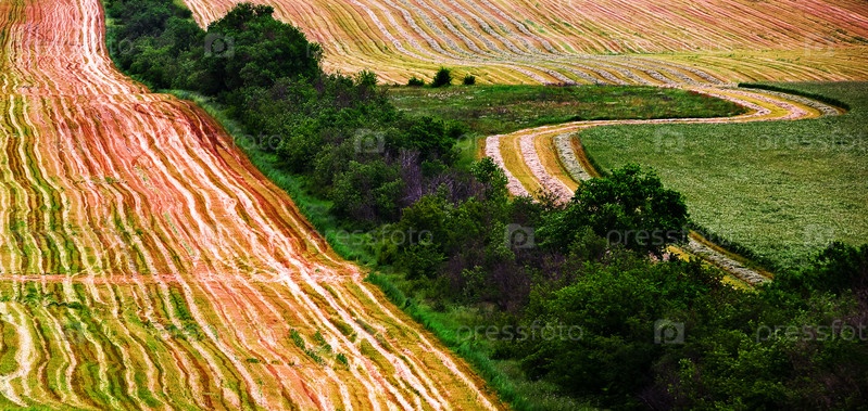 Сельскохозяйственные поля после уборки урожая, вид сверху