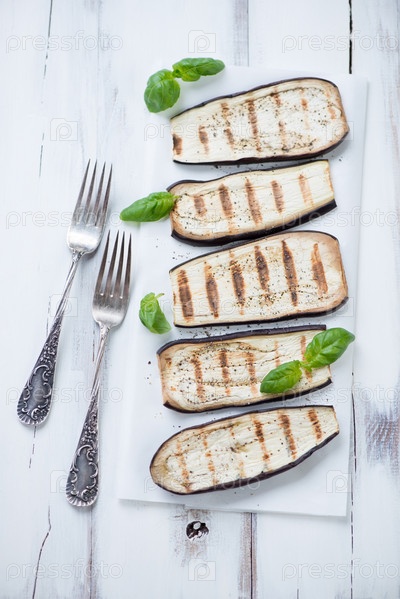 Баклажаны-гриль с зеленым базиликом